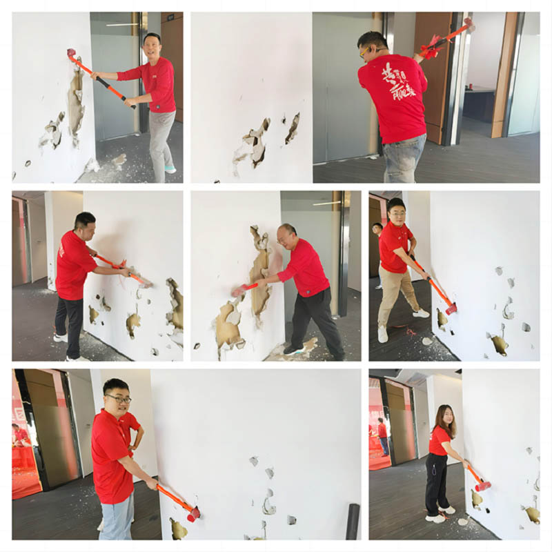 紅桌、紅錘、紅毯,色澤鮮亮紅潤的乳豬,紅紅火火!一錘開工大吉,二錘財源廣進,三錘萬事如意!伴隨著禮花的綻放,合景人手握禮錘,一同為新辦公區(qū)裝修開工儀式揭開序幕。在熱烈的掌聲中,大家共同慶祝辦公樓裝修工程的正式啟動!